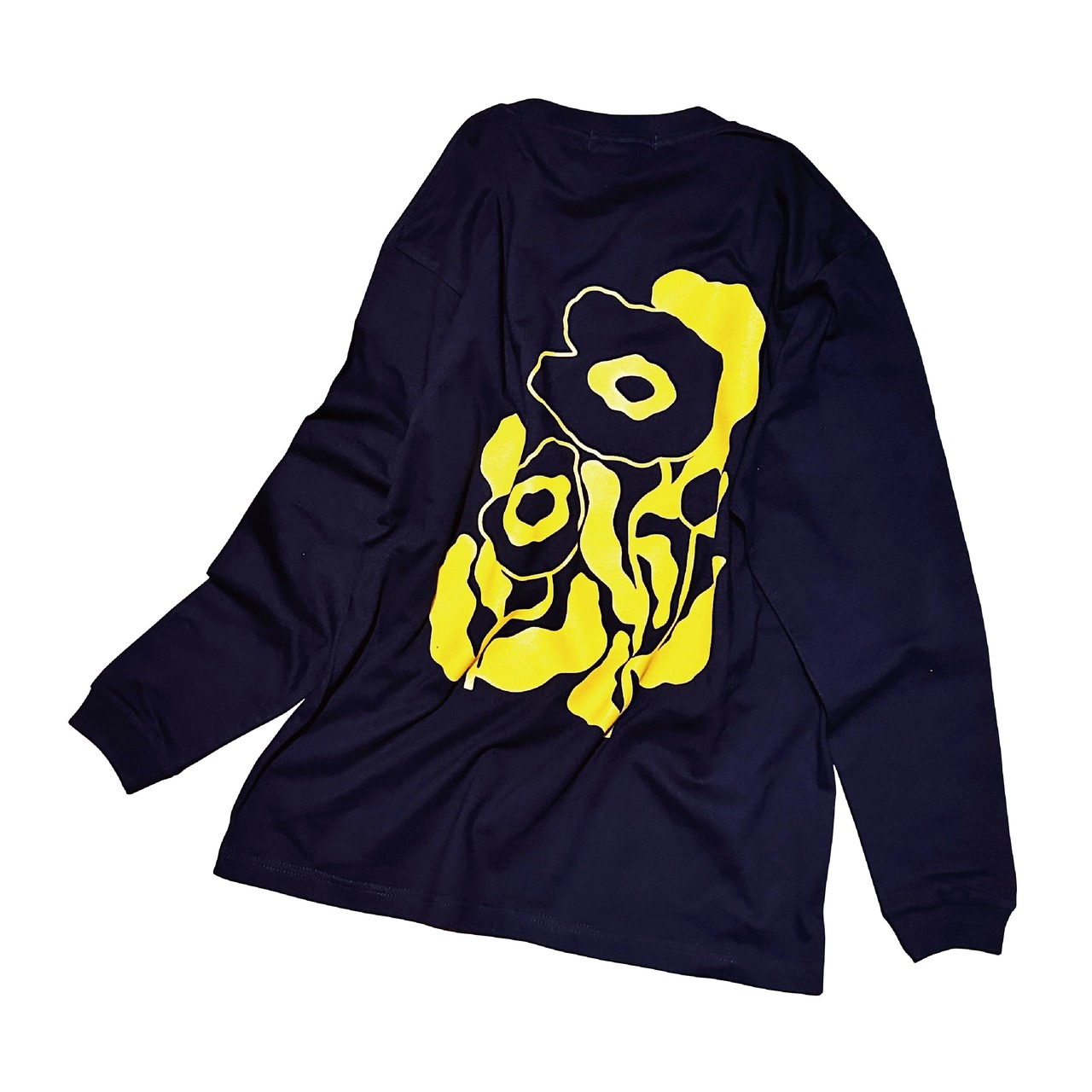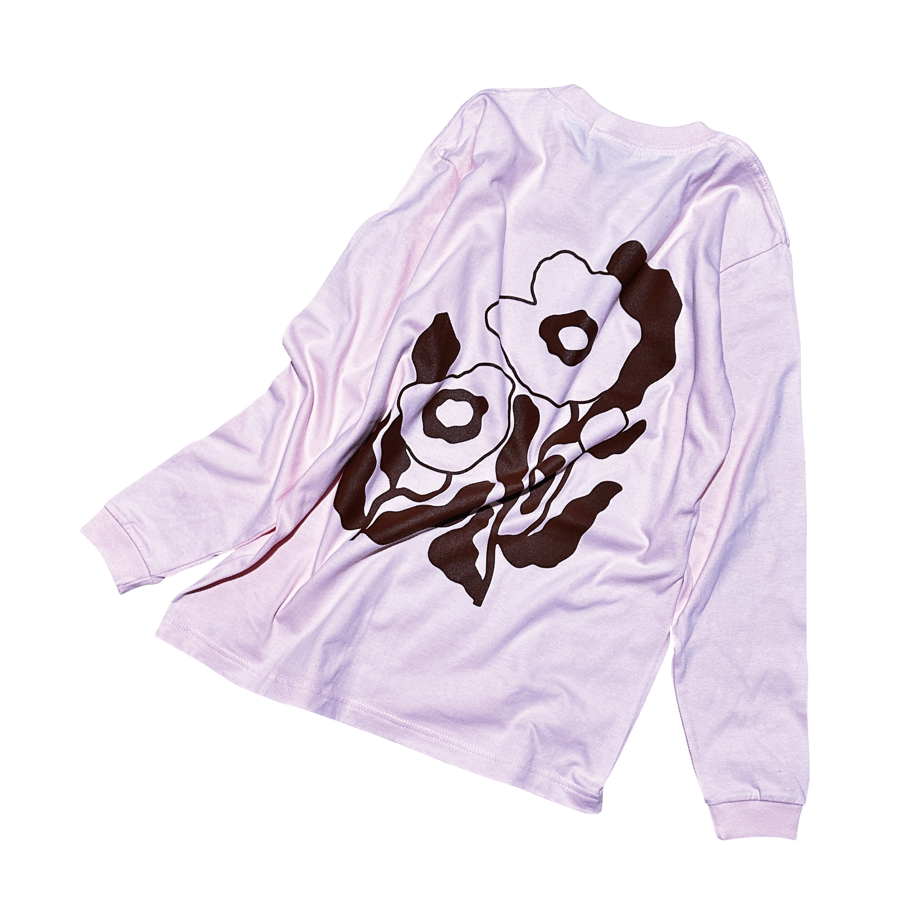 左胸にロゴのワンポイント、背中には大きくお花をデザインした新作長袖Tシャツです。