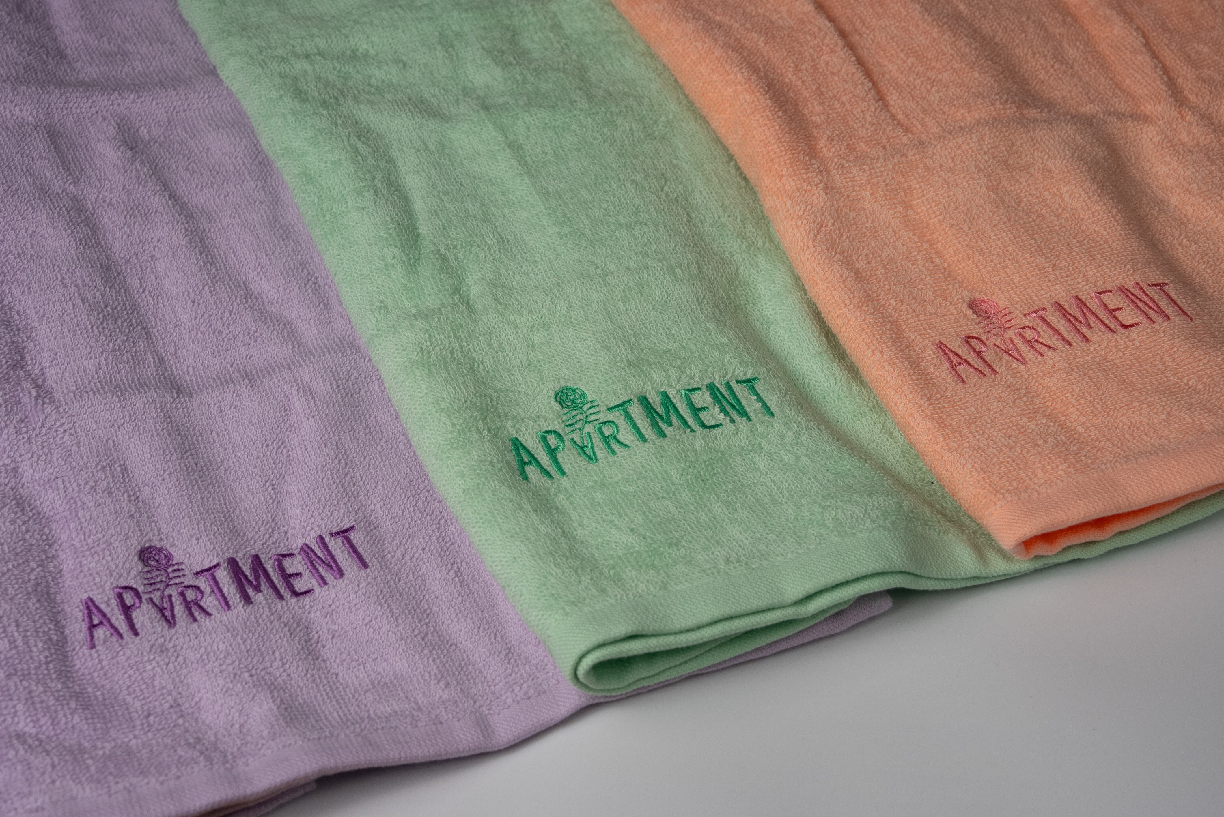 ロゴの刺繍の入った今治産のコットンタオルです。