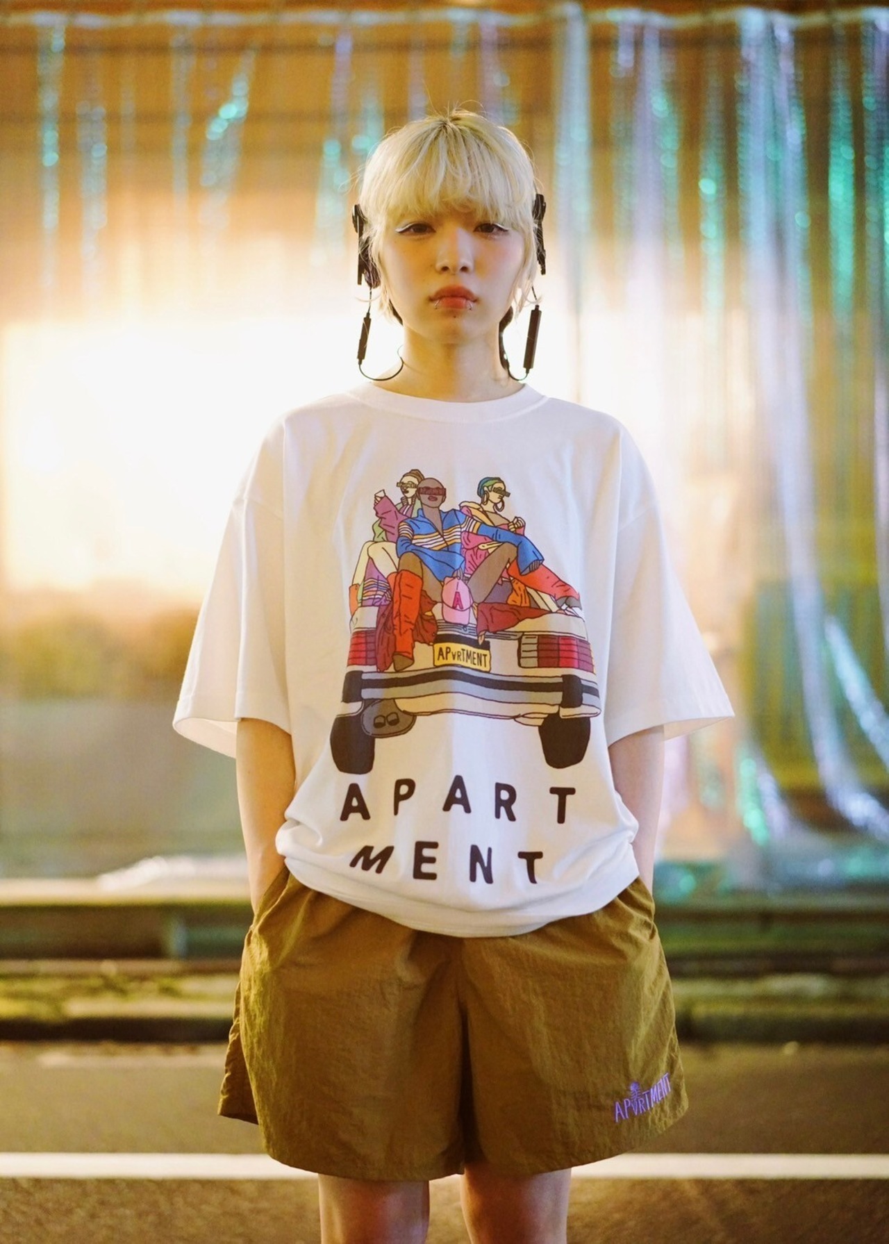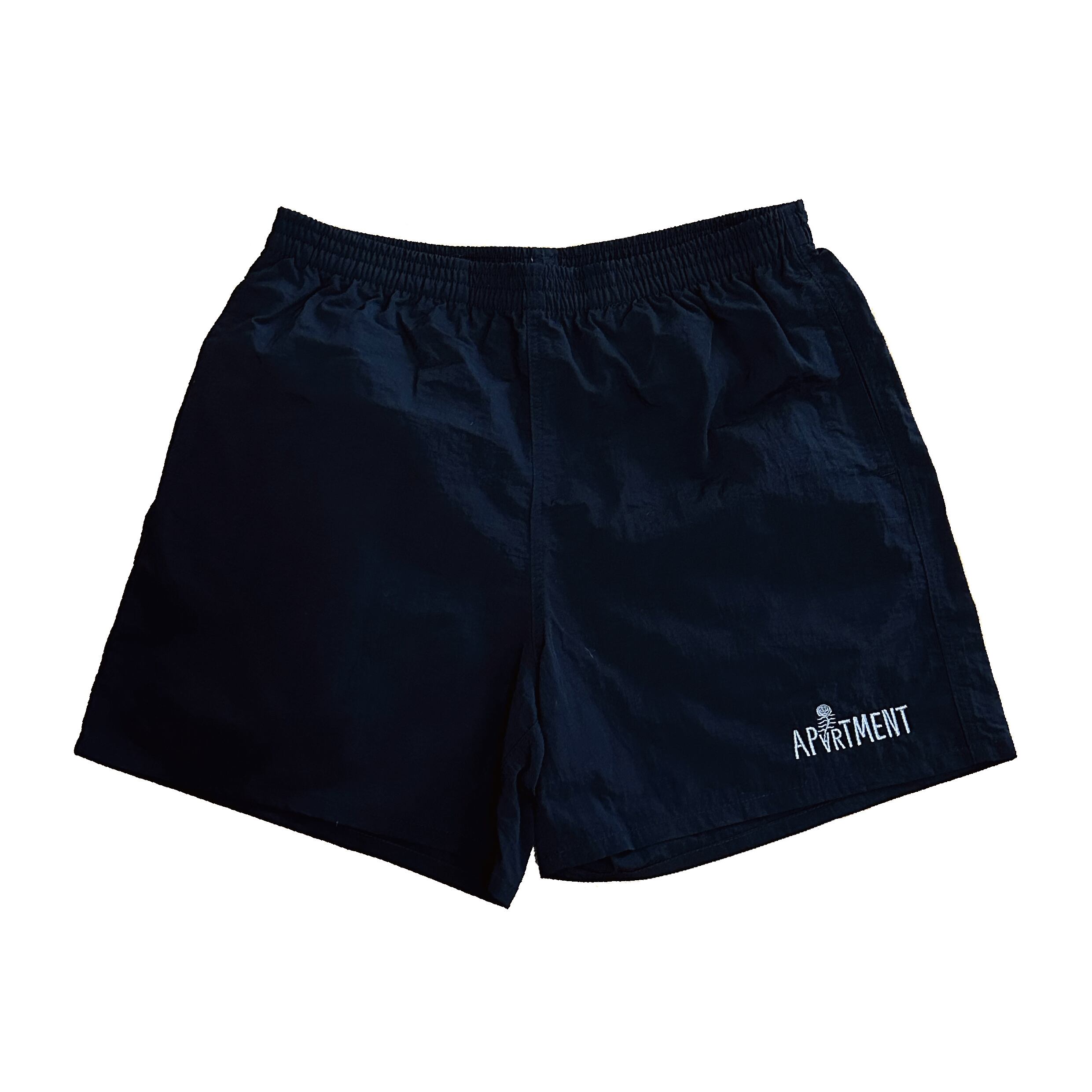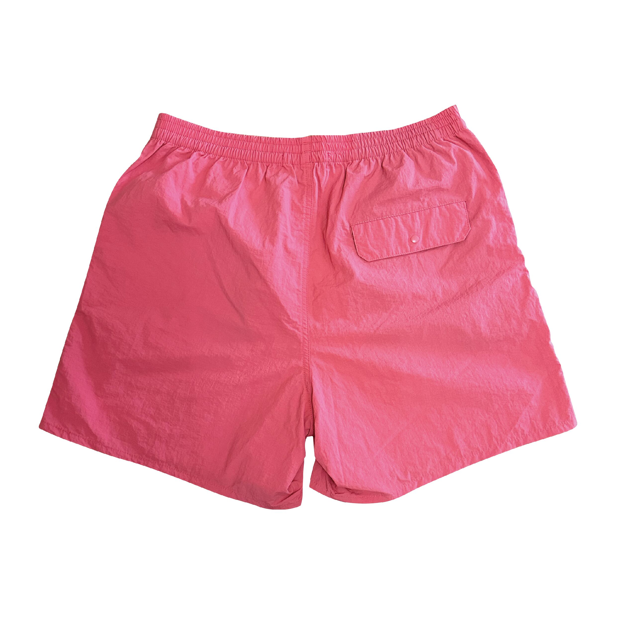 街穿きや水辺での使用も可能な、多目的ナイロンショーツにロゴの刺繍を施しました。