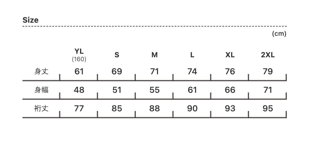 サイズ表の寸法は全て平置きで測定したものを記載していますが、商品や生産ロットによって多少の誤差や個体差がございます。