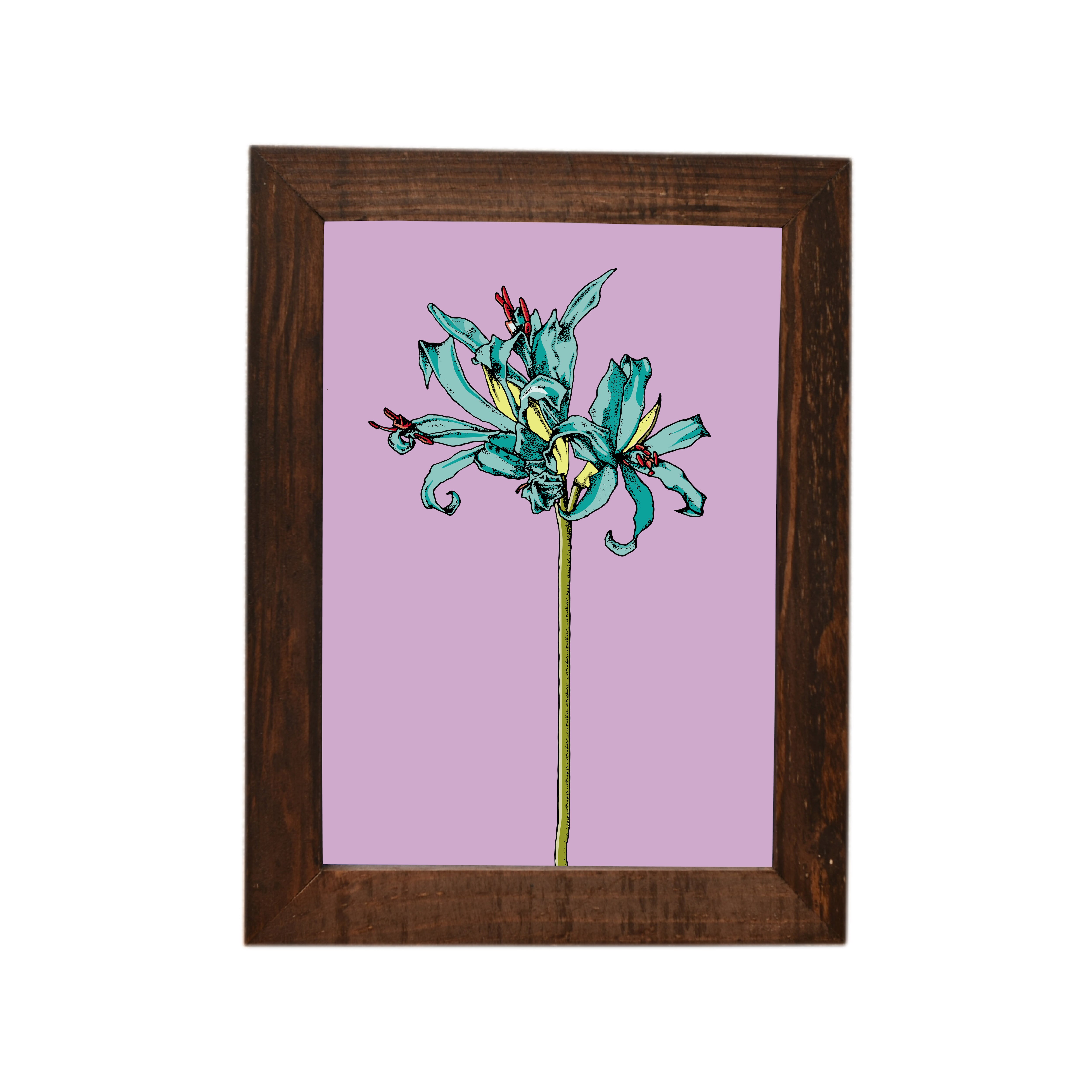 ダイヤモンドリリー(ネリネ)のイラストプリント、額装(2Lサイズ)付きです。